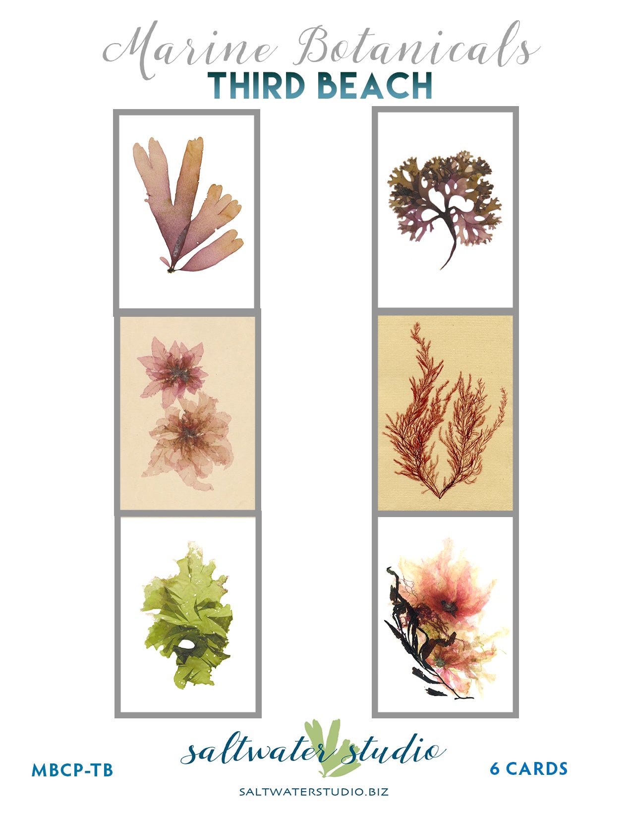 Saltwater Studio Newport sells both individual marine botanical greeting cards and packages of six marine botanical greeting cards.