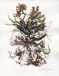 I created this collage at my art retreat in County Mayo, Ireland, at Mulranny Arts Center in April 2025. Ireland is such a seaweed friendly culture and has a great variety of specimens with many that are similar to what we have here in New England. I enjoyed creating this piece to reflect the tide pools along the Mulranny coast on the west side of Ireland.