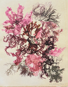The specimens in this piece are collaged and dried into this lovely paper using the seaweed's own adhesive! The measurements are 9 x 12" and it is signed by the artist. It will be packed flat for shipping.