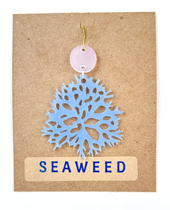 Saltwater Studio's seaweed ornaments are uniqely hand assembeled in my studio in Newport! Constructed from colorful acrylic, each one is made in-house using my Glowforge laser to cut the forms and assemble in fun color combinations. These ornaments are versatile and not limited to the holidays, hang them from cabinet knobs in your bedroom or bathroom, in your kitchen or windows throughout your home. Enjoy your reminder of the ocean!