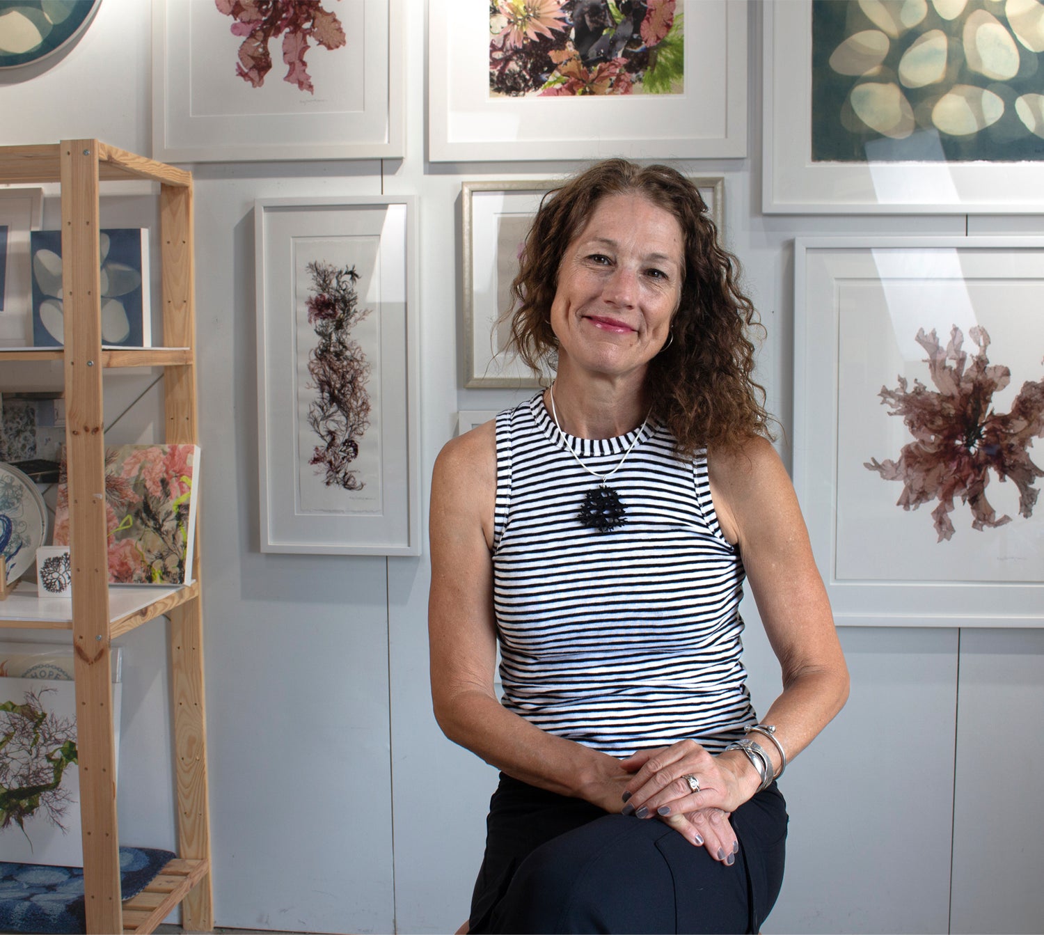 In addition to seaweed pressing, Mary also creates work using cyanotype and eco printing methods, often combining these techniques to explore the symbiotic relationships between nature and our human experience. Mary's work is a bridge for art and science, and also raises awareness for issues of ocean health and climate change.
